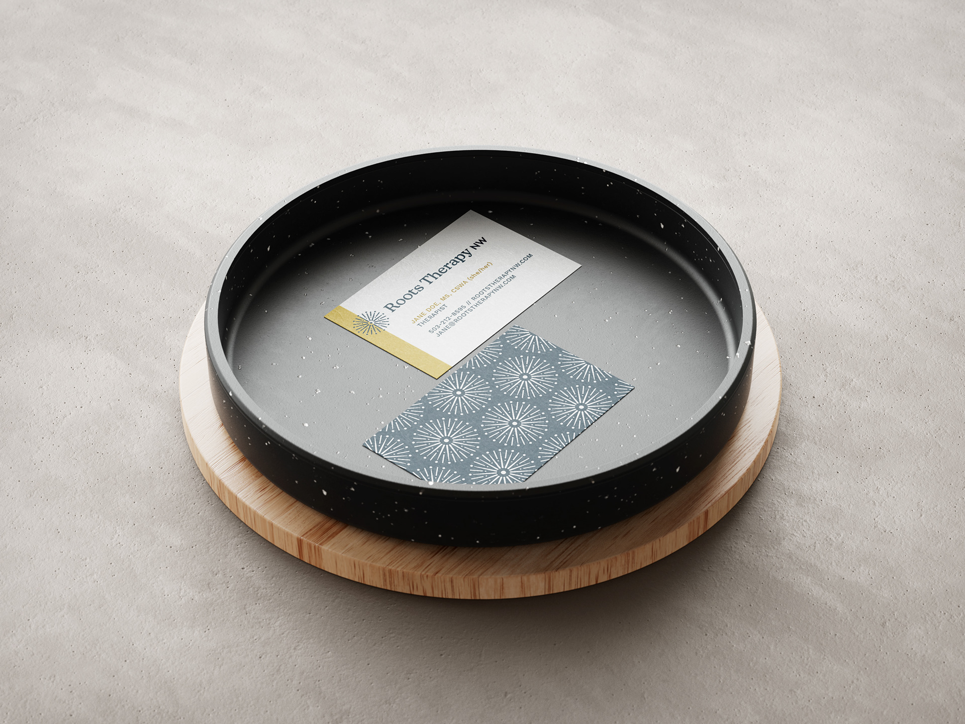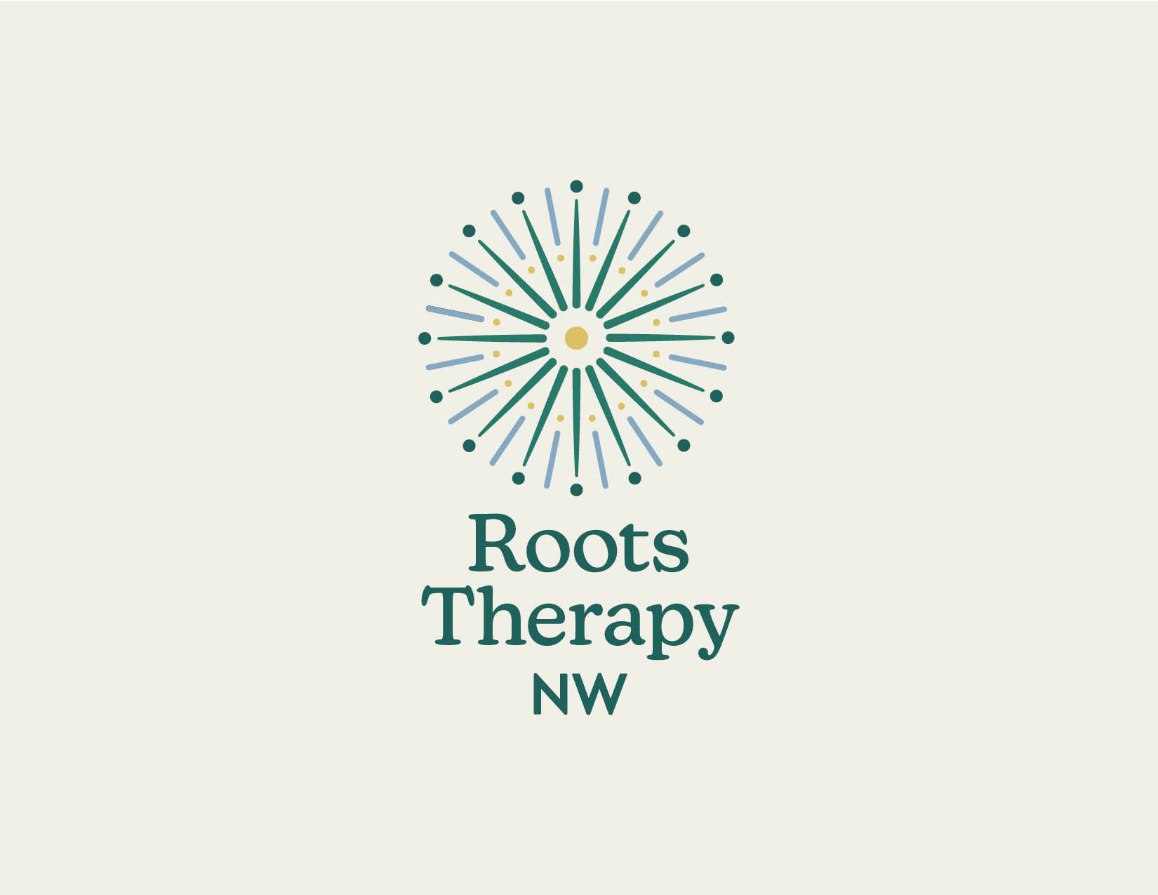For Roots Therapy NW, the brief focused on the keywords of safety and collaboration, and a modern and welcoming feel. I created an emblem inspired by a neuron firing, that also doubles as a reference to the many parts coming together in the collaboration between an individual and their therapist. Paired with a warm, organic typeface, it was the perfect fit for the practice. The emblem lends itself to a simple pattern as well, which worked beautifully on the business cards.